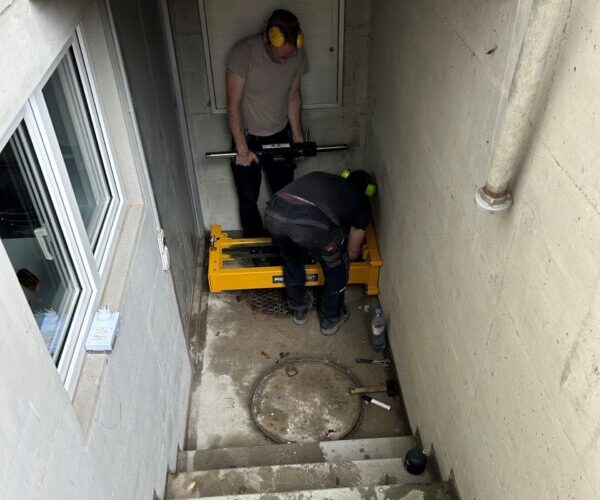Aufweitung mit Rohreinzug von der Grube in den Keller.